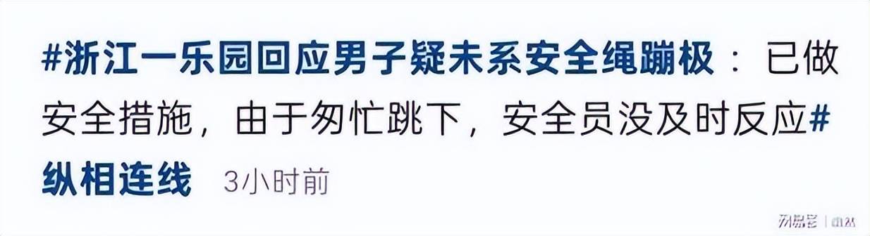视频传播开来后,许多人对乐园的安全措施产生了疑问,讨论的焦点也集中在男子是否佩戴了安全绳以及游乐园在这类高风险项目中的管理和保障问题。虽然公众的担忧声不断,但乐园方面也做出了快速回应。乐园的负责人表示,事件发生时,男子确实系上了安全绳,不过由于他跳得太过果断,现场安全员未能及时反应,才产生了“无绳蹦极”的错觉。