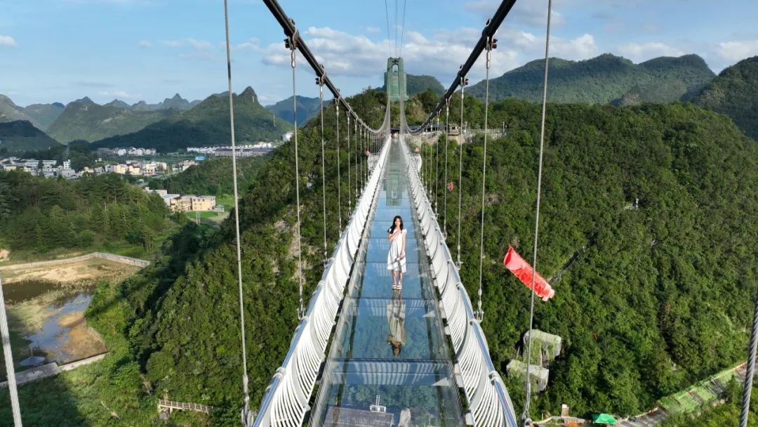 景区有广西高度第一、国内单体最长之一的玻璃栈道,以及玻璃吊桥、七彩玻璃滑道、喀斯特溶洞、明代炼丹古遗址、土司古城遗址等参观点,景区文化底蕴丰富,现已成为人们踏青、登高、祈福的理想之地。